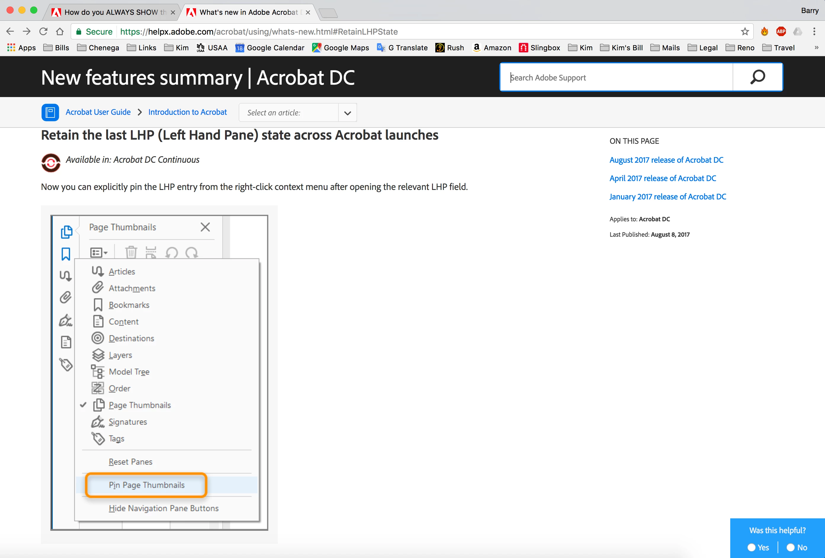 How do you ALWAYS SHOW the thumbnails pane by default in Acrobat DC?