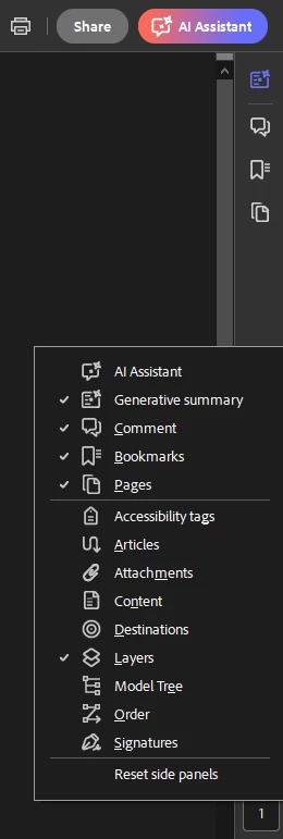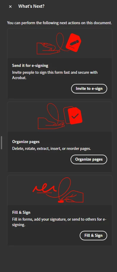 Every time I place my signiture in a PDF, this big pop up on the right pops up. It takes up most of my screen. It is very annoying. How can I stop this from popping up? I've tried right clicking the side bar and clicking the checkmark that is next to "What's Next?". However, all it does is hide the popup and it does