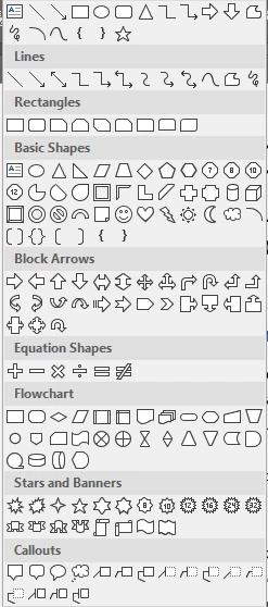 I think it would be great if Adobe would include the following shapes that you can add in a MS Word document like the following: