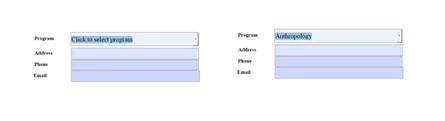 I can't seem to get the code right to automatically populate the Address, Phone, and Email fields based on the option chosen in [Program]. I'm probably over looking something very simple.