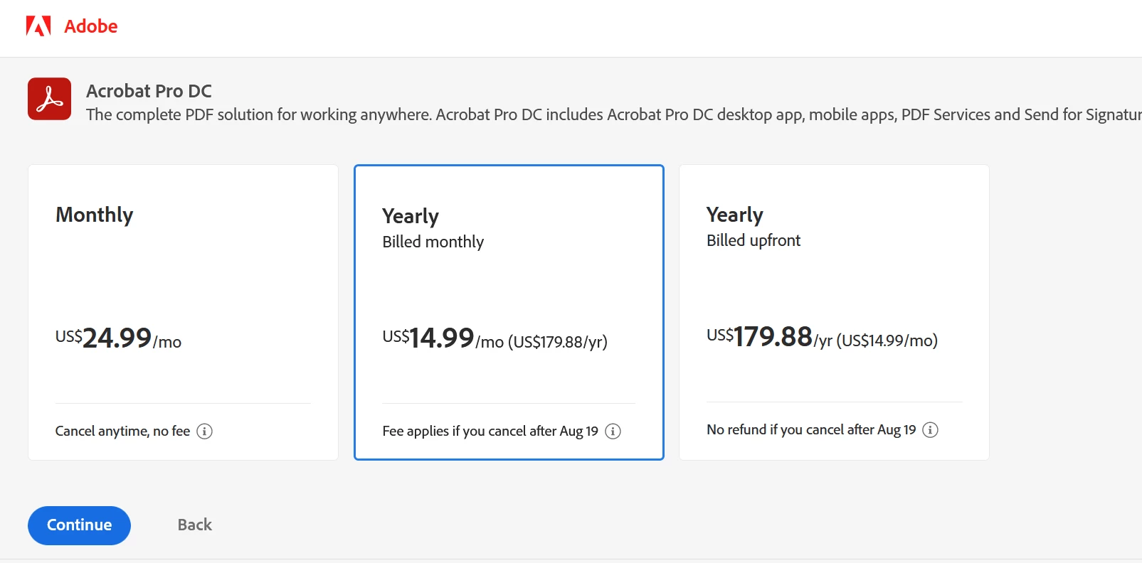 I took Adobe Acrobat Pro for the Annual plan, and paid monthly now am not using this service how can i change my annual subscription to monthy?
