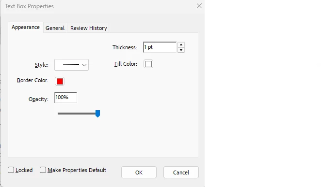 I would like to red-line documents by drawing a red rectangle with 100% opacity around the relevant fields and have the interior "fill" of the rectangle be a ~25% opacity yellow color to highlight the field but be transparent. When right clicking on the rectangle and going to "Propertiest" I only have one opacity slider that affects both the border and fill color the same.