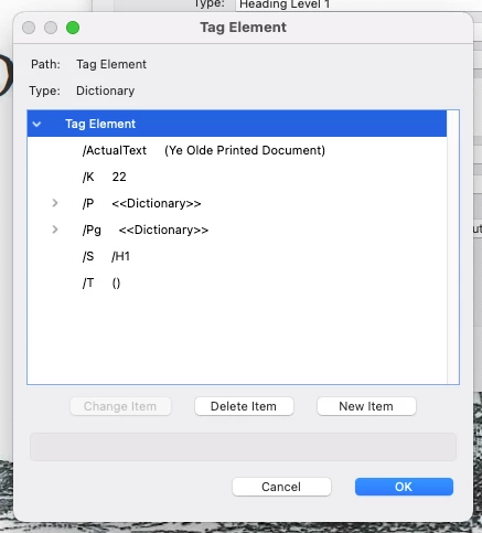 I have a example scanned document that I'm trying to make accessible. I can fix all the normal issues relating to accessibility however, Acrobat seems to create broken text within the tags which is read by a screen reader in testing. I'm assuming this is down to the font used which is confusing acrobat. I've tried right clicking on the tag, clicking properties and entering the correct text in the "Actual text" input but the end result is the same - the broken text is what is read by a screen reader. I know I could edit the text like any normal text but I don't have that font installed.
