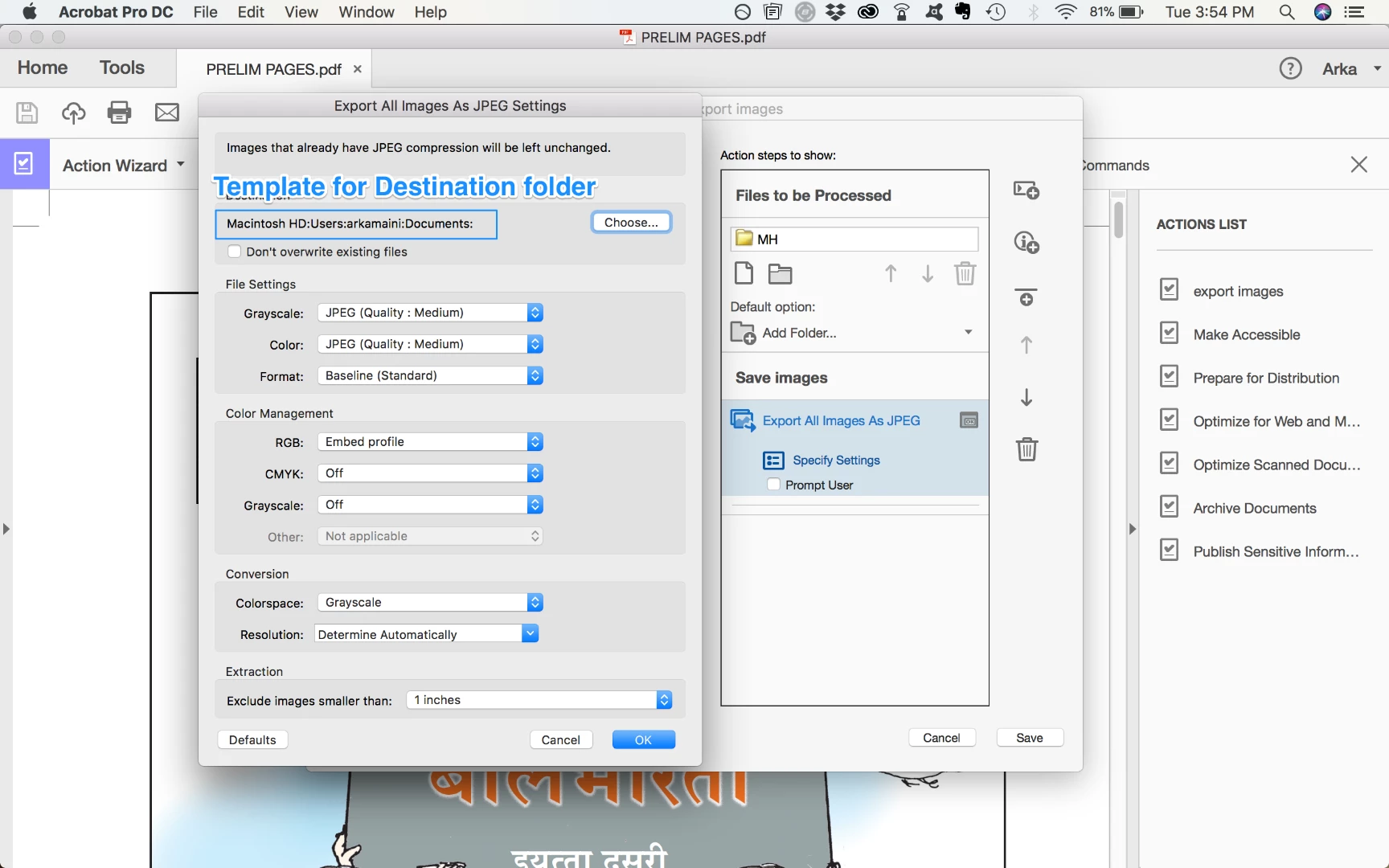 I have a folder with multiple subfolders, each containing multiple pdf files. For each subfolder, I want to extract the images and put in one folder. How can I automate this using "Action Wizard"? I can't find an option to configure the Destination folder?