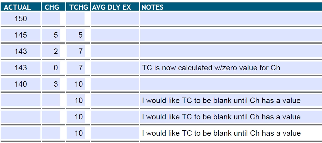 I have a running total (TC) that I do not want to calculate (remain blank) until both parts of the calculation have been completed. To do this I have this custom calculation: