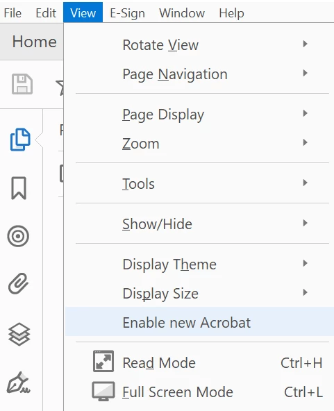 How to display hamburger icon in 2023 Adobe Acrobat or Reader interface?