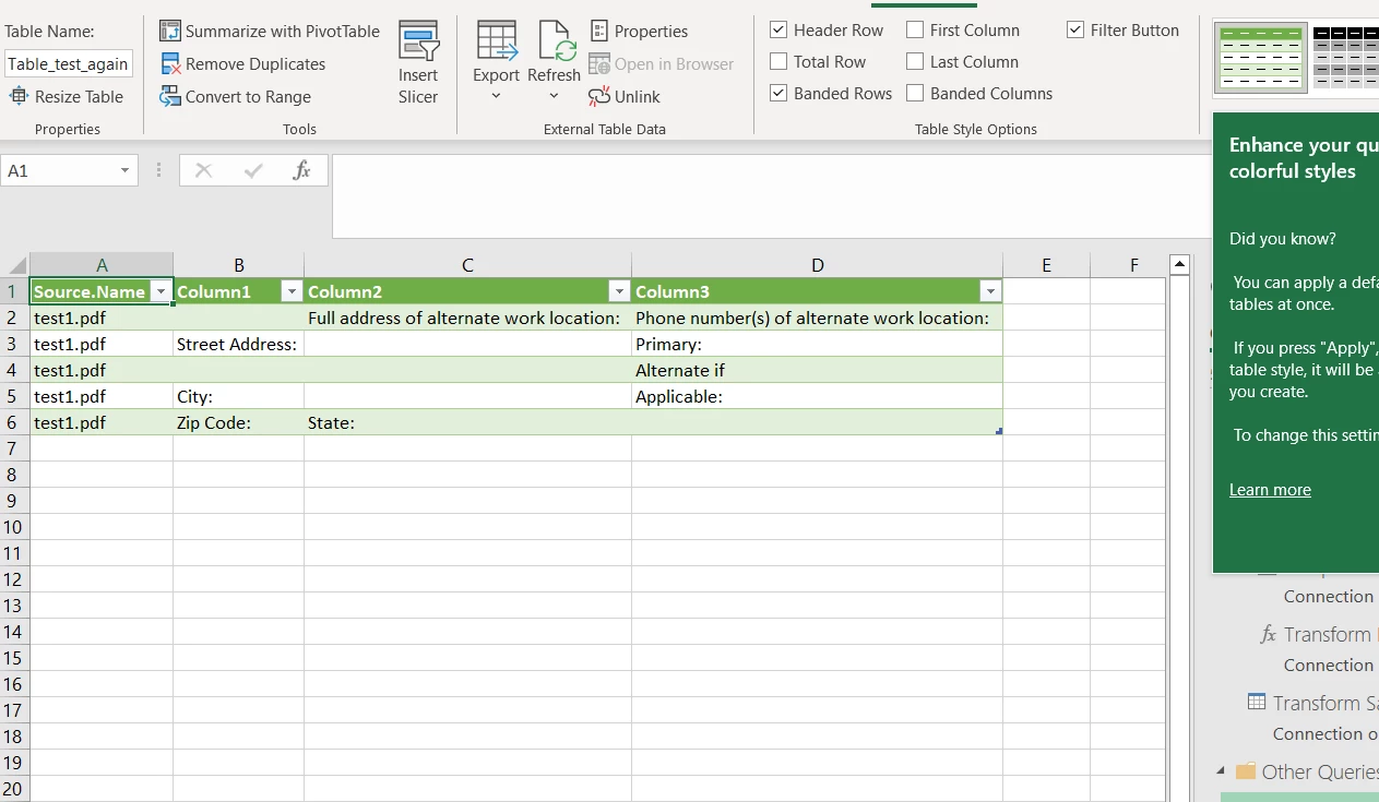 I am new to forms, but I can make a form that looks and saves ok. However, I'm having a lot of trouble exporting my forms to Excel. The export goes fine, but the conversion is not working properly- it pulls random data from the .pdf and doesn't pull any of the form field answers, which is what I need. I thought you could not create tables in Acrobat, but when I look at the accessibility tags its a mess it terms of what it sees as tables. Basically, I need the field names as columns with the field answers as rows in Excel. Is there a way to get the right data pulled? I'd prefer not to use any scripts as this is for my company and our IT is very strict.