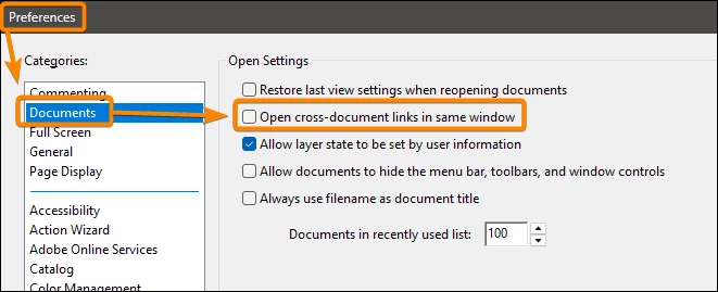 Previously, clicking on one of the links opened an attached document in a new tab of the same Acrobat window, which was exactly what I wanted. Now, however, now when I create new documents with attachments, clicking on a link opens the attachment in the tab of the main document, i.e., the main document is replaced by the attachment. I am not aware of having deliberately changed any options associated with the links.