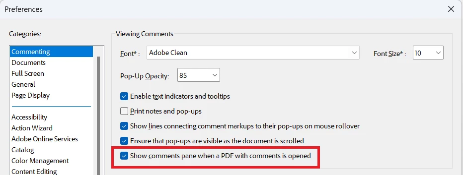 How to prevent the Comments pane from automatically opening every time I open a PDF with comments?