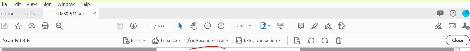 I recently purchased Acrobat Standard DC and use it on Windows 8.1. The language setting is English. Now, I've downloaded a PDF file which is in both English and Japanese, and as the text in it was initially unsearchable, I used the 'Recognize text' button on 'Scan & OCR' (see below screenshot),