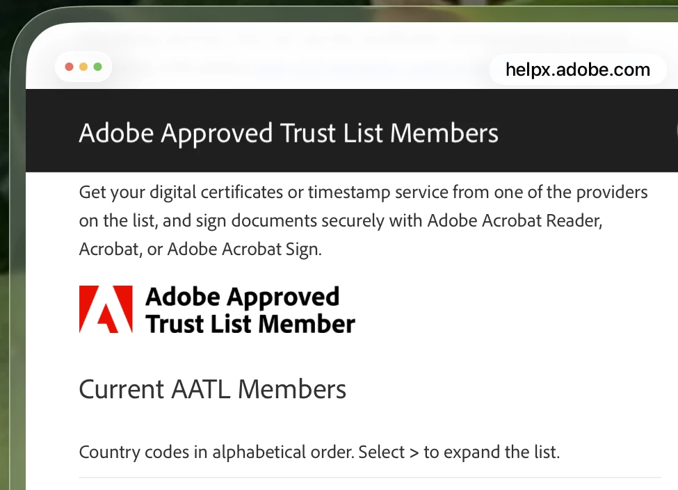 As a national-level provider, it is critical for us to align our digital signature services with Adobe’s trust standards to ensure our citizens' signed documents are natively trusted within Adobe Acrobat and Reader.
