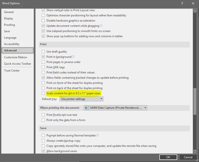 2. See screenshots below when printing a PDF in Word
