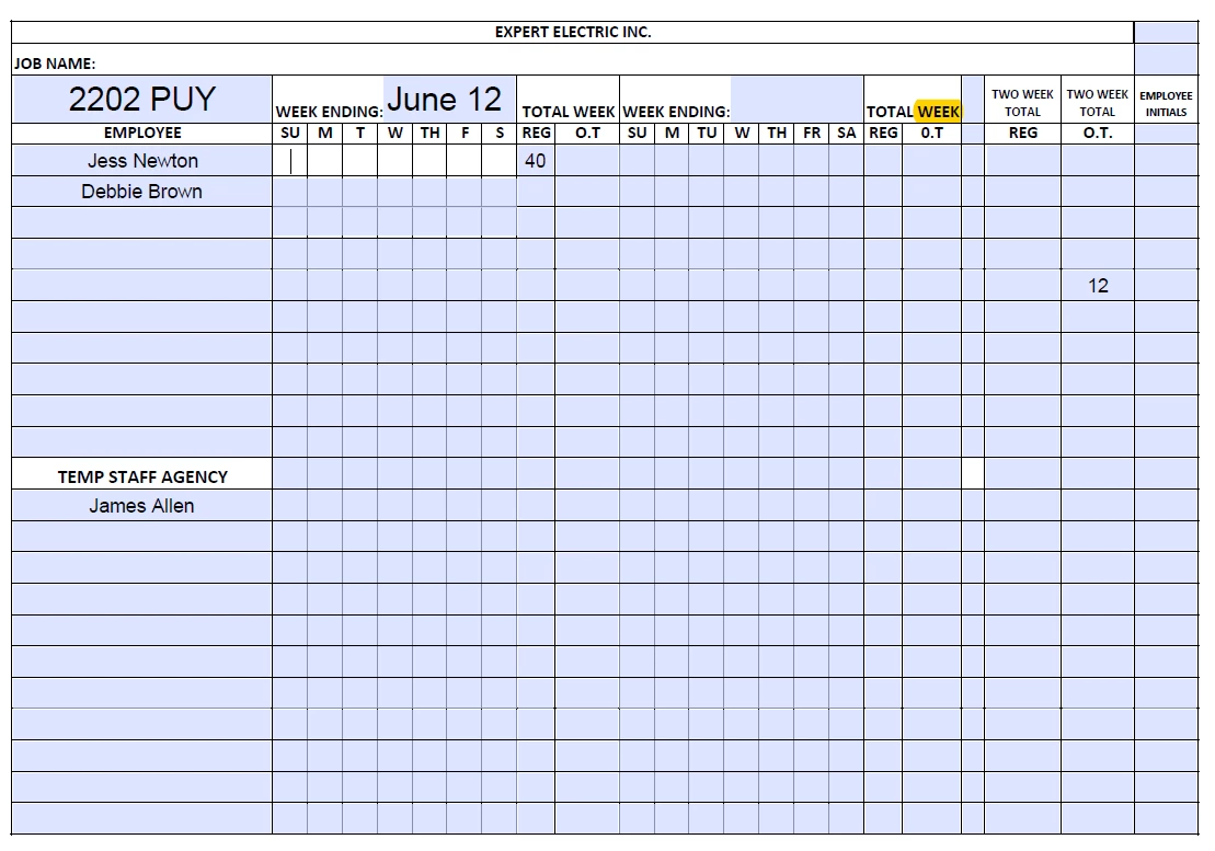 Oh this is great. I am able to fill in some areas. But not the days of the week. I need my field guys to be able to type in their hours per day, on the days of the week.
