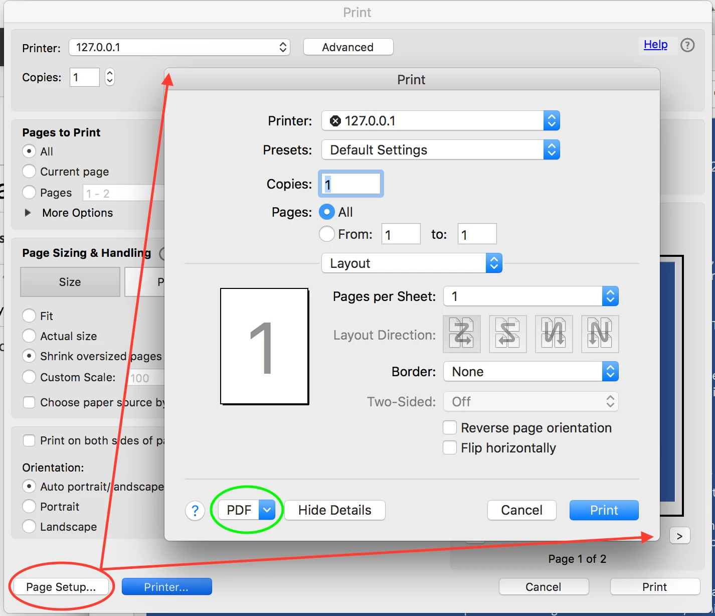 Figure 1: Print dialogue box allowing you to save as a pdf