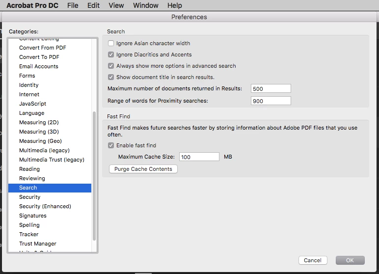 Acrobat (Reader/Pro/Standard) : File menu : Advanced Search