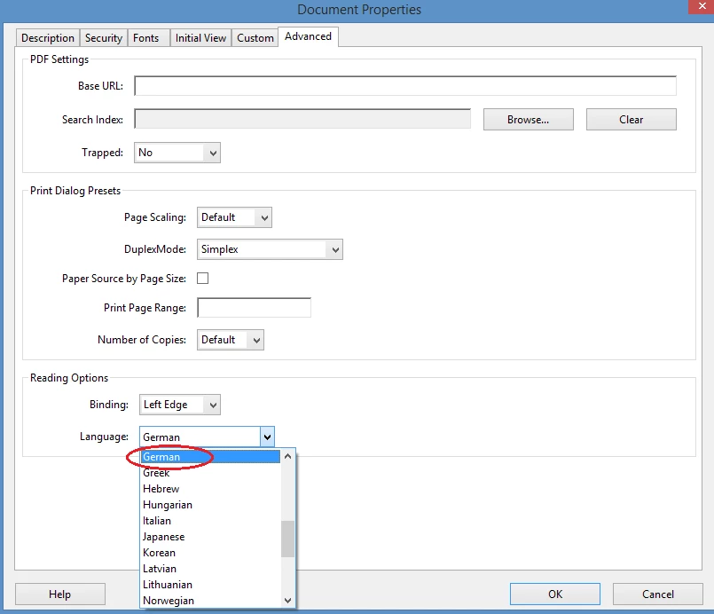 Could you please let me know that how to set Language in Document properties of PDF in batch processing or in some enfocus actions since we have lot of pdfs to change language settings to German for Accessibility tagged pdf process. This is one of the customer requirement. Is it possible to do in Batch Processing via Action wizard or in any tool ?