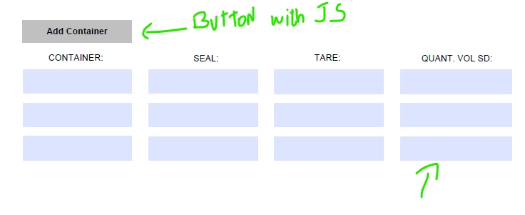 I created a button on Adobe PDF, so when the user click on it, it creates 3 fields per row(Amount of times it is clicked the button).