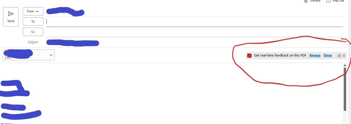 How do I stop receiving this "Get realtime feedback on this PDF" pop up in my Outlook emails that have PDF's attached?