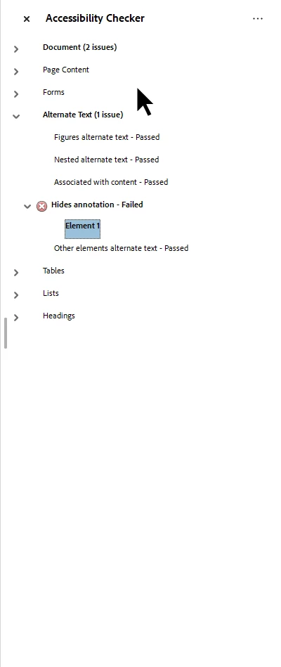 Inside the Tag panel, and inside the Content panel, Acrobat refuses to allow me to remove the alt text from the child (video) without it also removing the alt text from the parent Annotation tag - and vice versa. Some sort of forced inheritance.