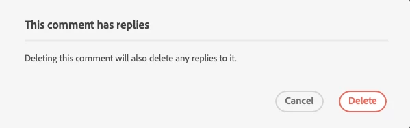 Is there a way to turn off the pop up that says "This comment has replies. Deleting this comment will also delete any replies to it."? I work a lot with edits and the comment tools in Acrobat, so it's annoying to constantly have to click out of this when I'm quickly deleting comments.