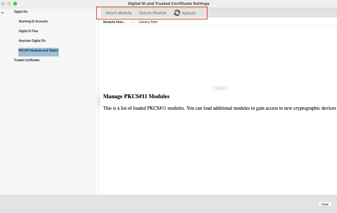 Recently, I realized that it doesn't work and when I checked, there is no attached module under the Preferences > Signatures > Digital IDs > PKCS#11 Modules and Tokens.
