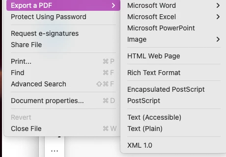 Adobe gives the following instructions but for me, step 4 is missing. That is, File > Save As does not offer PDF as one of the options. Everything works fine up til step 4. I also looked under File>Export as and this also does not offer PDF as an option. I attached screenshots of both.