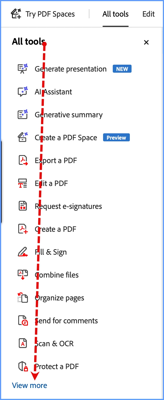 Click on the All Tools in the left-hand panel. At the very bottom, you’ll see “View More.”