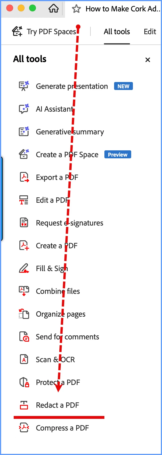 After clicking on that, look just below the Protect a PDF option, and you’ll see the Redact Tool.