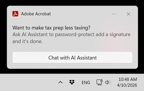 So it was bad enough that constantly had close 2-3 popups when opening Adobe Acrobat Pro, now it weaseled it’s way into my Windows 11 Notifications. I don’t understand, is the monthly subscription I’m paying to Adobe not enough? Why do you think it’s a good idea to aggravate your customers like this? Yeah I know there are settings I can disable in Preferences. Guess what, I did and you added more! Please, Adobe, stop the Enshittification of your excellent products!