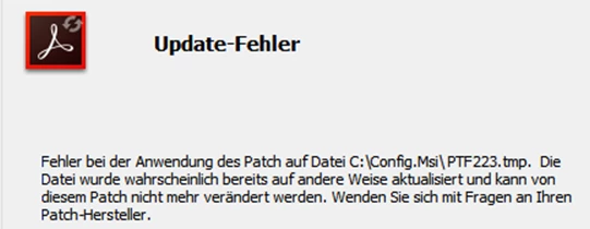 I have a Adobe XI pro - OEM-Version. An update is always answered with an error message for example C:\Config.Msi\PT28E1.tmp. Do anyone know, what to do in this case. Adobe itself said they can not help.