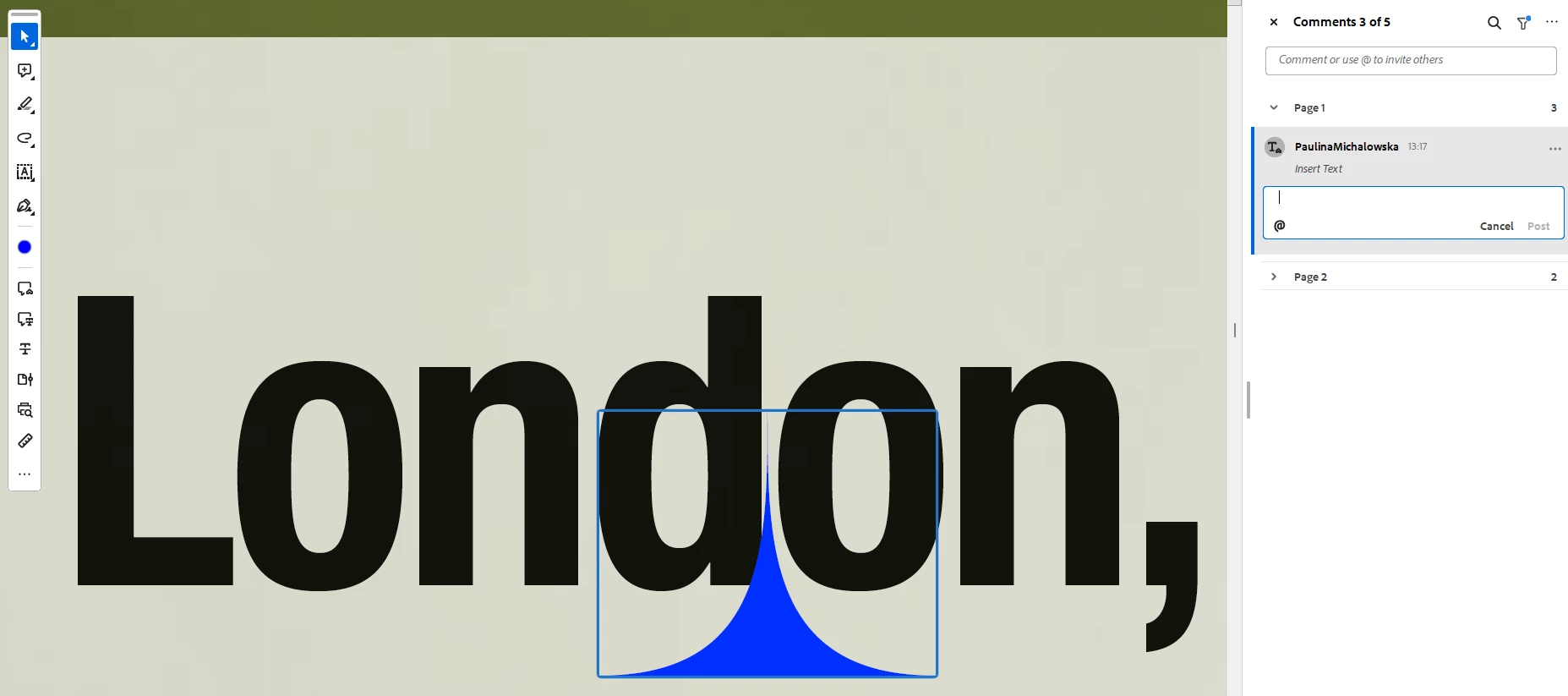 When I want to add a space or indicate that a new paragraph should be added, I use Insert Text tool. I click where I want to add space/paragraph, the general insertion caret appears and when I press space bar or Enter I can't post the comment. The insertion caret doesn't change when pressing any of those keys. I can't post the comment, either.