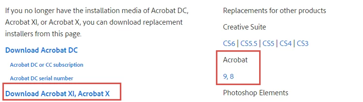 Download Pro or Standard versions of Acrobat DC, XI, or X