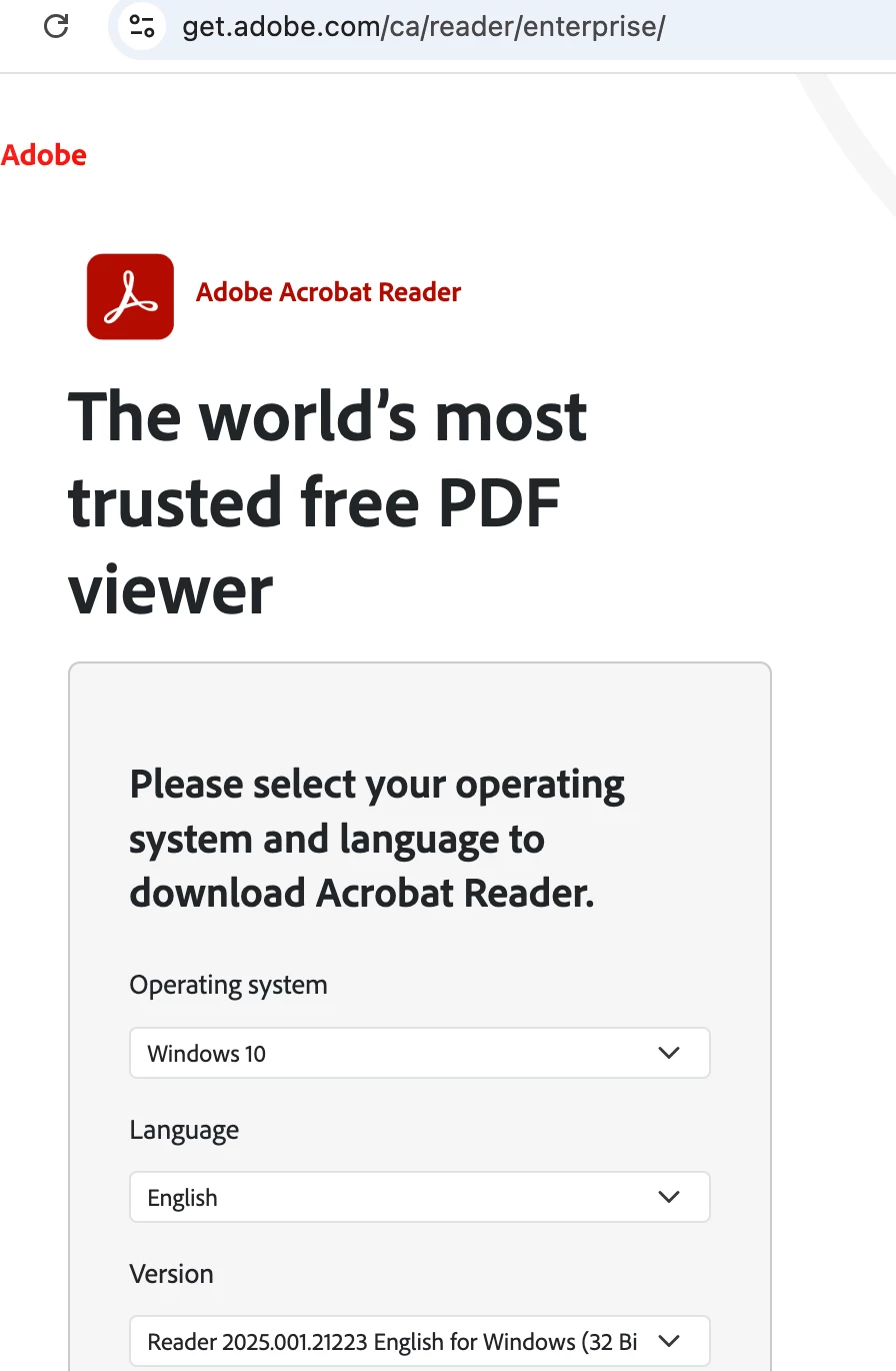 installing reader on win 10 32 bit running as a VM