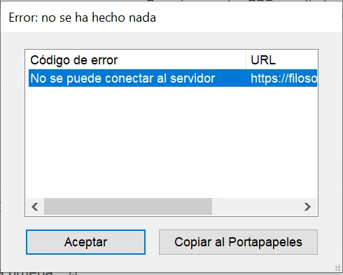 Intento crear PDF desde cualquier página web y da error: "No se puede conectar con el servidor"
