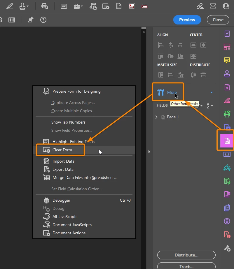 Thank you so much for your help. When I click on the tool, you show in your image, I do not have an option to clear the form. Do you know why?