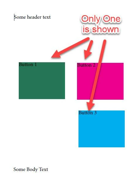 I hope somebody has good news for me on this... Got a client that likes interactive PDFs and has created a document where you can click to change the color of an item. (essentially its like project status) In the simplified example the buttons are next to each other however in their version they are stacked and only one is shown at a time. They click the button to cycle through statuses.