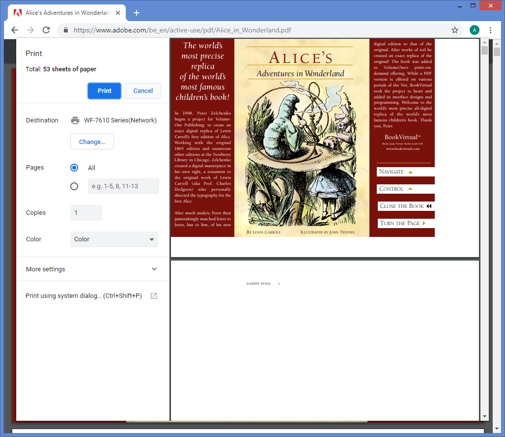 Is there a way to "Print Current View" when using the adobe plug in on google chrome?