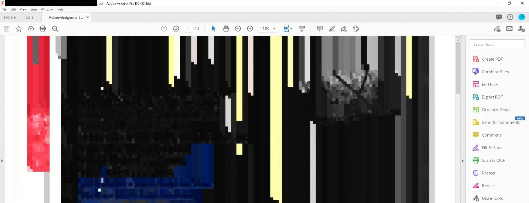 We are having issues with files that are becoming corrupted when the file is sanitized after being redacted. When the file is redacted without sanitizing the document, it saves and reopens without issue. However, when the file is sanitized after being redacted, the text in the document becomes unreadable.
