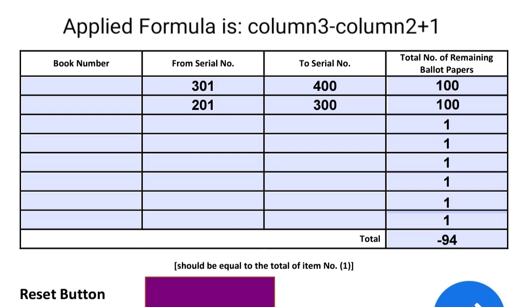 i need help i applied the formula in PDF Form for subtraction which is column3-column2+1 for calculation, now if some fields are left empty it shows in total column the value is 1, (if the column3 and column2 are left empty in total column4), help me. Also tell me if i can get my desired result of calculation with a single button, but same result as i asked.