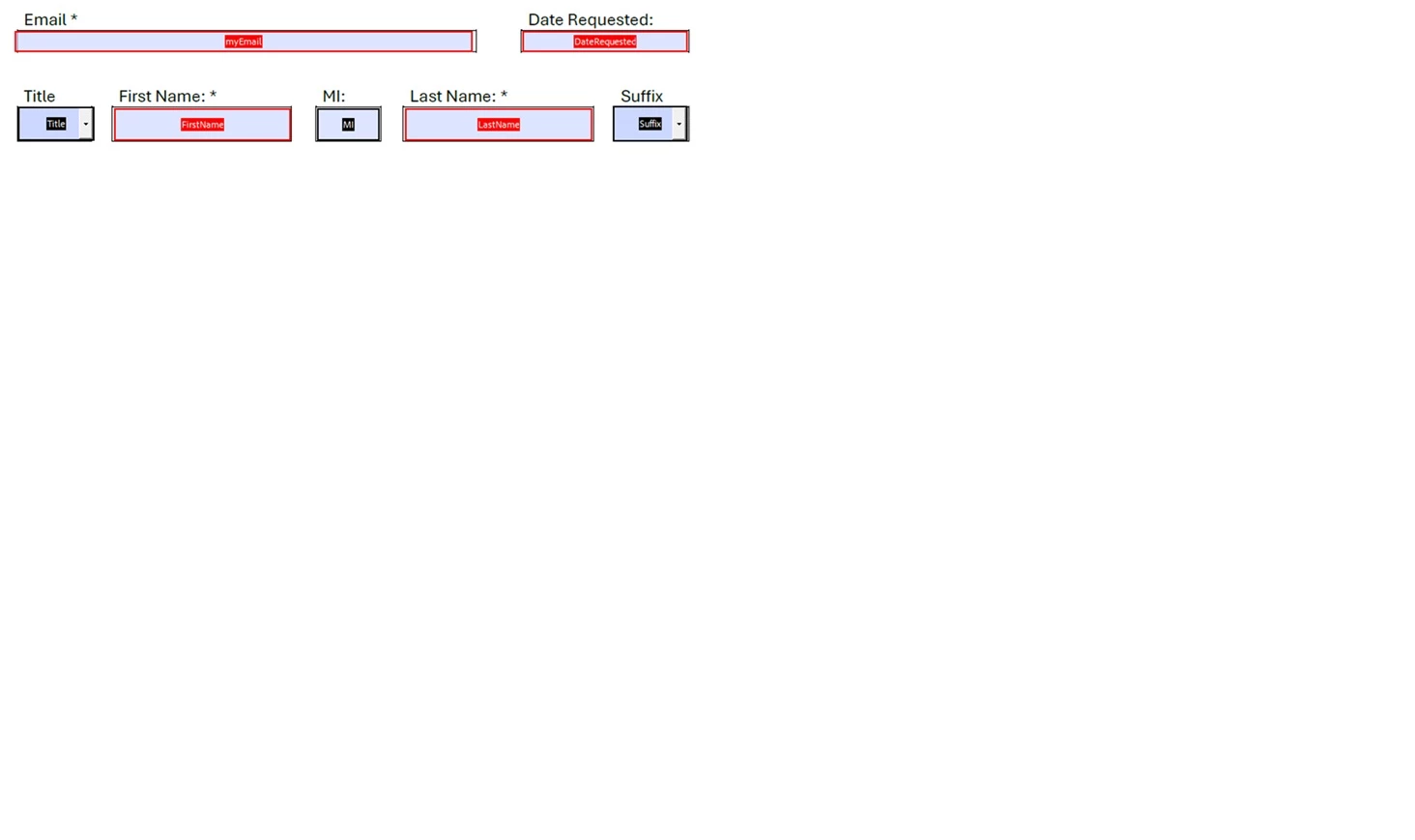 var Suf = this.getField(“Suffix”).value;