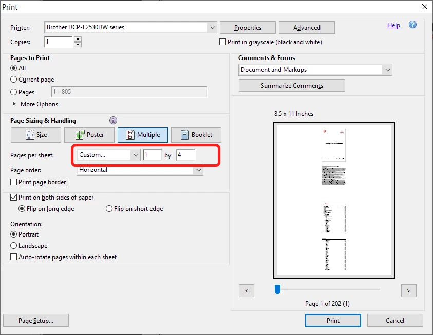 Can 'multiple pages per sheet option' print one after another? As far as I know, it only prints pages as tiles in a page. I don't want tiled pages, I want one after another. What can I do to print these pages?