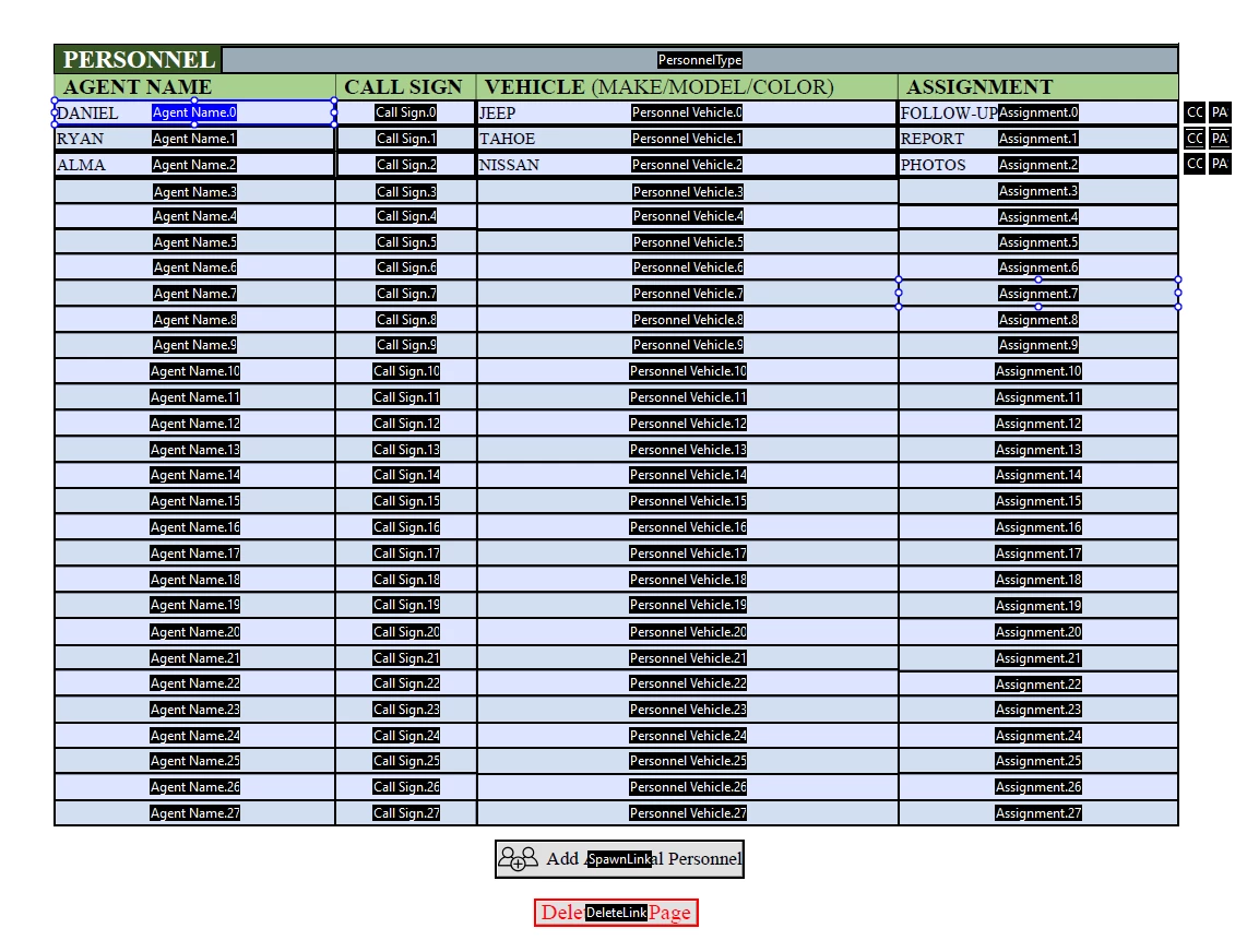 Below are two images. The first image shows what the first 3 rows would look like if they were filled out by users and the second image shows all the fields on the page. I didn't add the buttons at the end of each row yet because I wanted to figure out the scripts first before making a bunch of buttons.