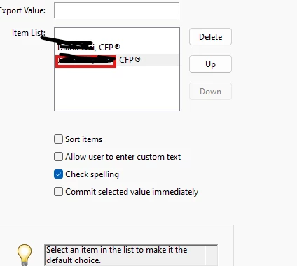 We thought you meant in the actual list when the dropdown is activated, not inside the properties window.