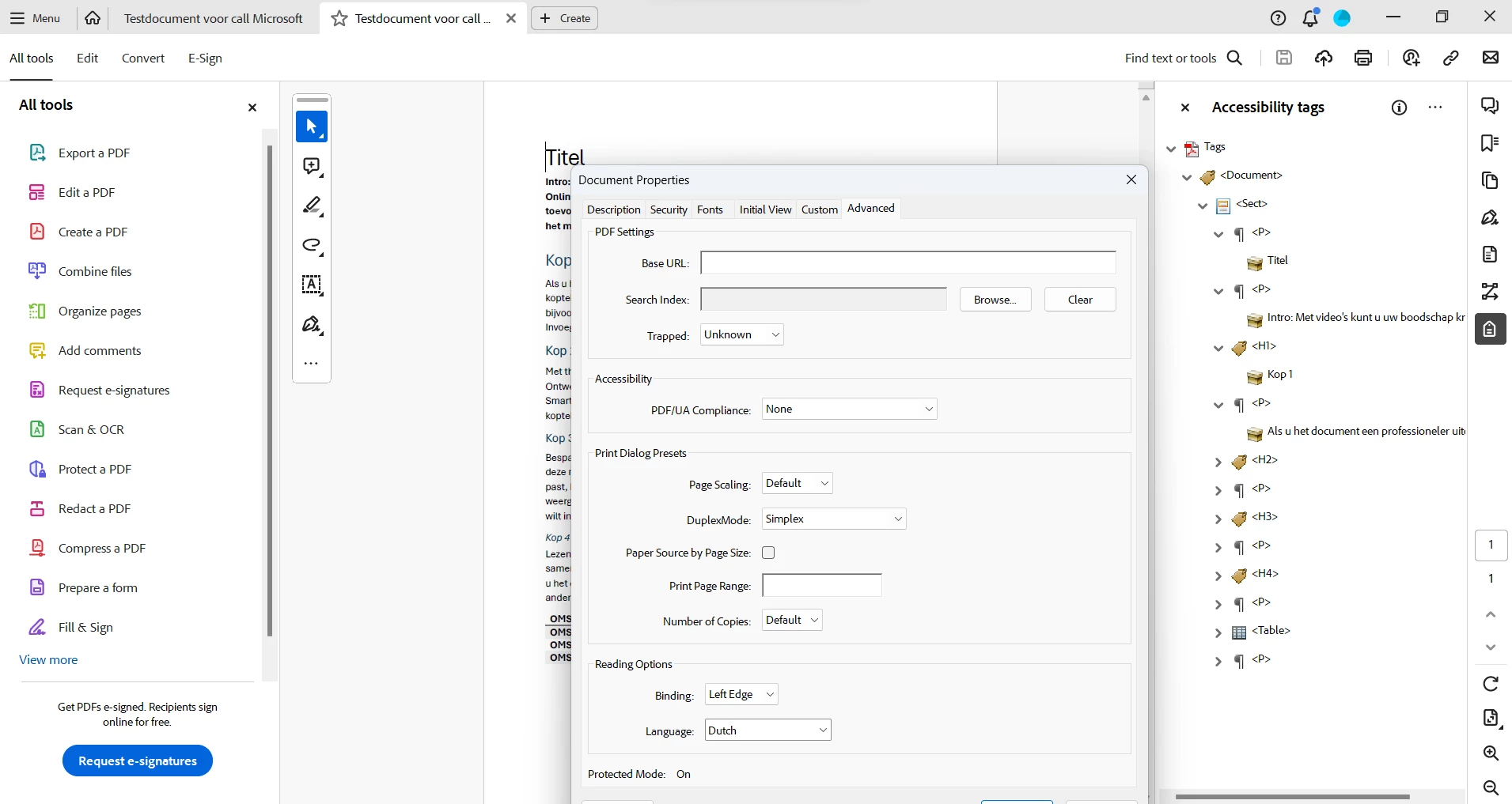 Problem is: When exporting a document from Micorosft Word on MacOS to pdf (Save as, Create PDF and share link, Adobe Document Cloud, Create PDF on the Acrobat Ribbon), it all creates an interactive pdf, but in English, although language settings in docx is Dutch (Nederlands). All content is wrapped in <Span> tags.
