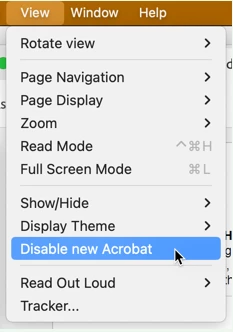 Under the "View" drop-down menu select "Disable New Acrobat"