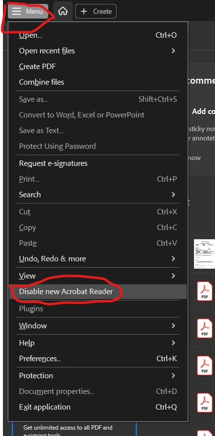Just "Disable new Acrobat Reader" under the file menu and let me know if that work.
