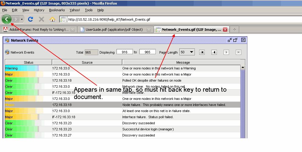 We're looking for a workaround. The new version of Adobe Reader 8 does the same thing. We can't use another browser because the manual is set for mass distribution in a corporate environment and changing the destinations to page number works, but it's endless amounts of data entry.