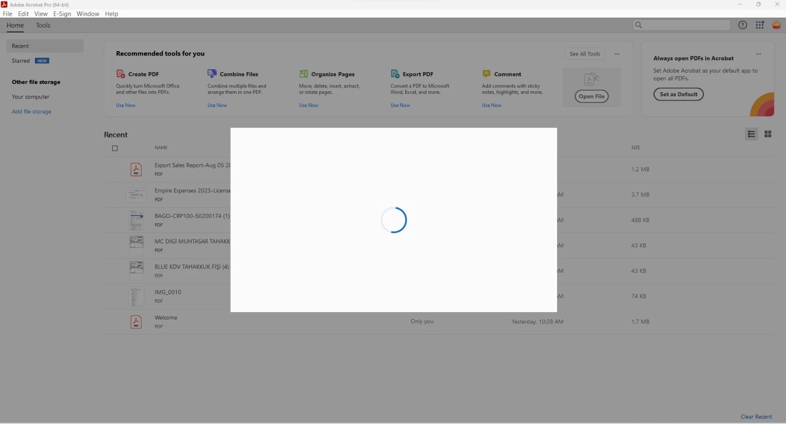 I am facing an issue while opening any pdf file through acrobat. It stucks and pops up a loading window. Below is the given screenshot of it.