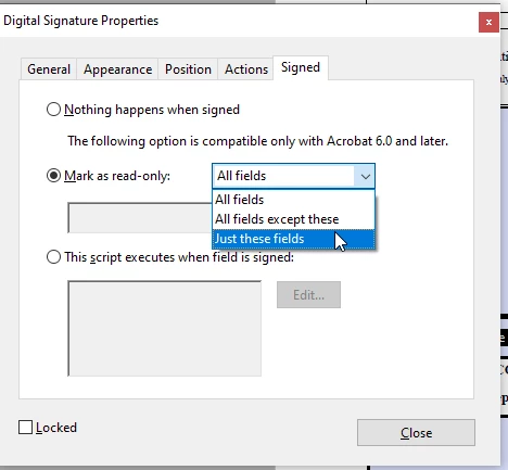 Lock fields after digital signature