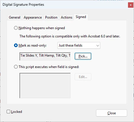 When test signature is signed, lock all the test fields. Unlock when signature is cleared.
